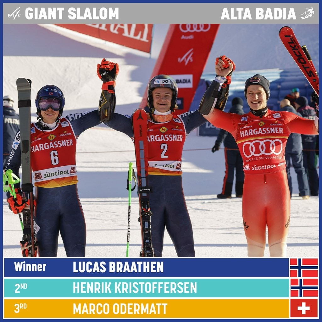 Норвежанецот, триумфира на велеслаломската трка во Алта Бадија, Италија на кој по двете оствари најдобро вкупно време (2:36.35) оставајќи го зад себе за само 2.стотинки поискусниот свој сонародник Хенрик Кристоферсон. Како трет трката ја заврши Швајцарецот, Марк Одермарт кој застана 10.стотинки зад победникот.