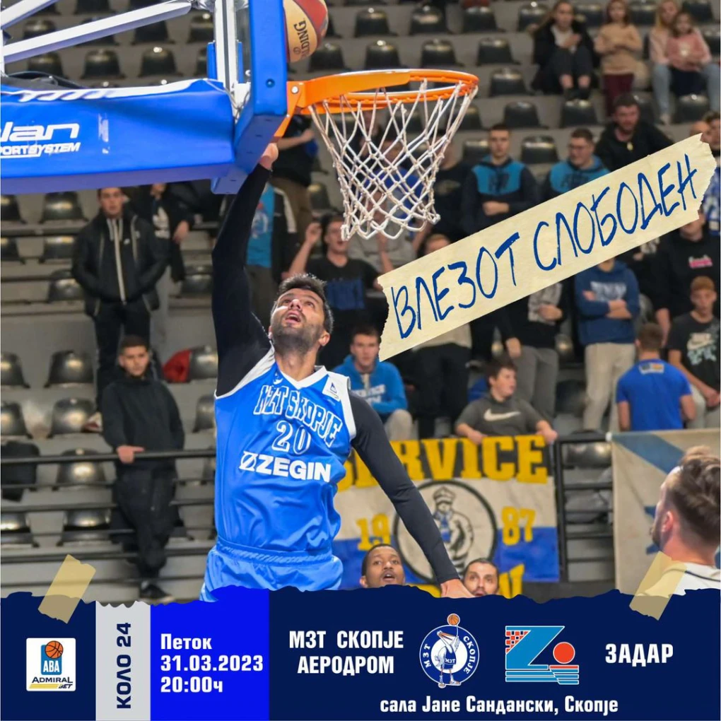 Кошаркарите на МЗТ Скопје Аеродром вечерва пред своите симпатизер ќе го игра натпреварот против Задар, во рамките од 24-тото коло на АБА лигата.