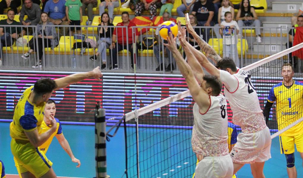 Македонските одбојкари вечерва во СЦ „Борис Трајкоски“ во Скопје загубија од фаворитот Украина со 3:0 во сетови.