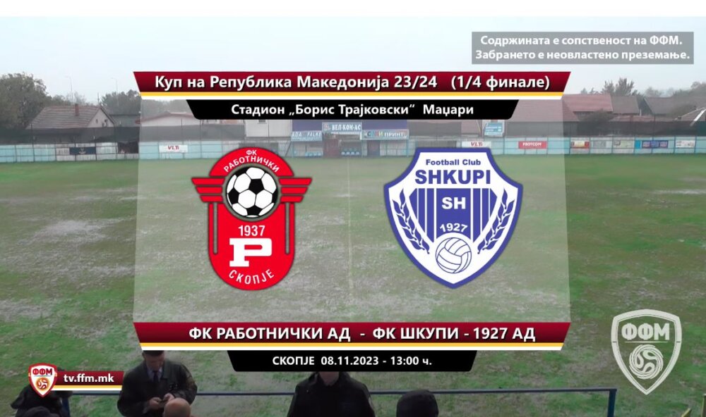 Дуелот од четвртфиналето на фудбалскиот Куп на Македонија меѓу Работнички и Шкупи е одложен.