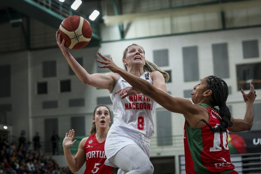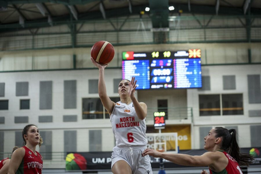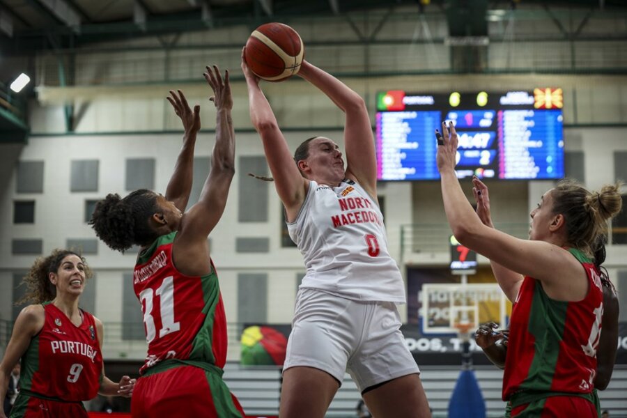 Во првиот натпревар од групата „Г“, Македонија е поразена на гостувањето кај Португалија со 65-52.