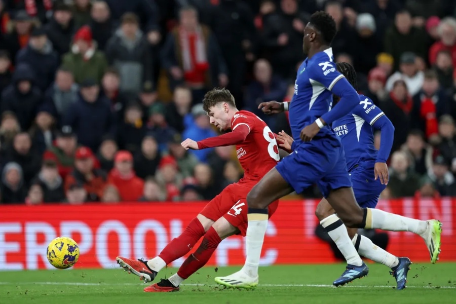 Доминик Собозлаи зголеми на 3:0. Нкунку со својот гол намали на 3:1. По невнимателно изгубена топка на Челзи на 4:1 зголеми Луис Диаз.