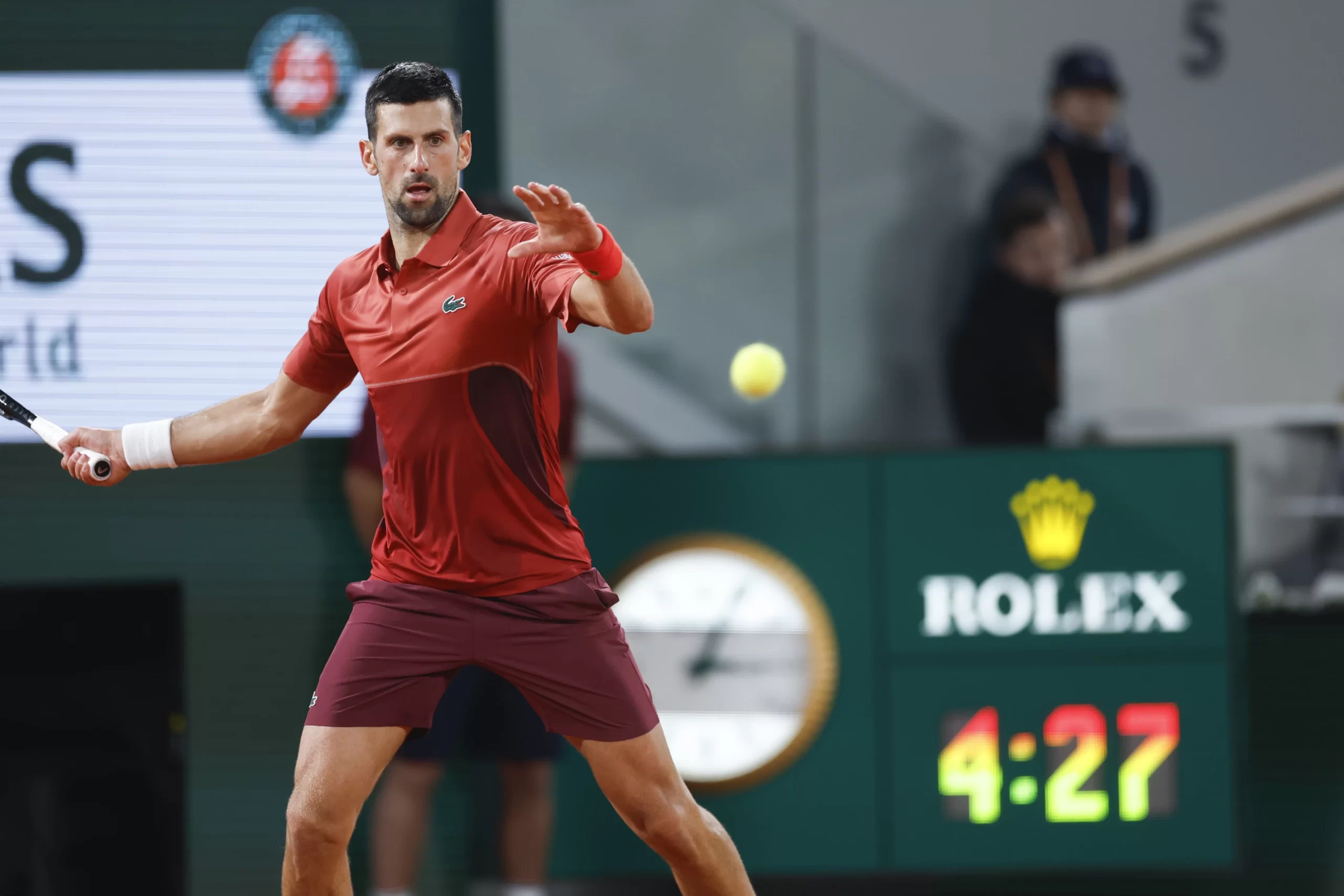 Поради дождот во Париз, променетиот распоред и времетраењето на натпреварите, мечот меѓу Ѓоковиќ и Музети започна во 22:37 часот. Организаторите решија тој да не одложува и прекинува па заврши во 3:07 часот по полноќ.