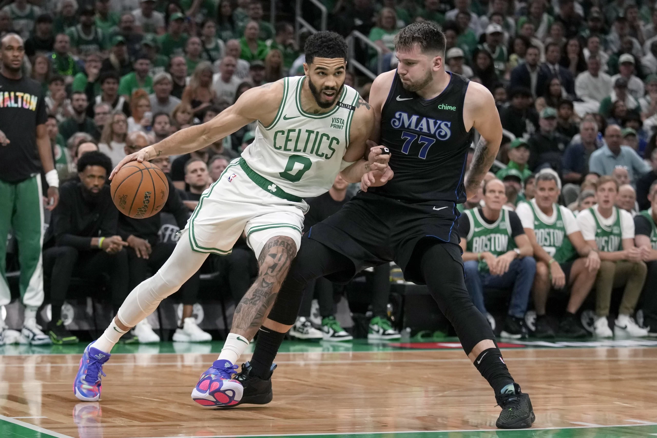 Во победничката екипа Џејлен Браун со 22 поени беше прв стрелец, а веднаш зад него беше Кристопанс Порзингис. Летонецот кој поради повреда не одигра ниту еден од претходните плејоф натпревари, во првиот финален постигна 20 поени.