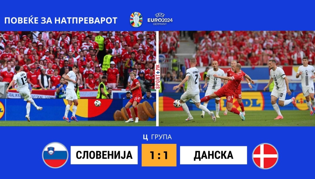Во првиот натпревар од групата „Ц“ на Европското првенство во Штутгарт немаше победник, Данска и Словенија ремизираа 1:1 (1:0).