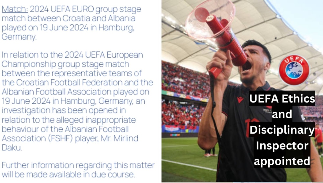 Во врска со натпреварот од групната фаза на Европското првенство на УЕФА 2024 година помеѓу репрезентативните тимови на Хрватската и Албанскиот одигран на 19 јуни 2024 година во Хамбург, Германија, отворена е истрага во врска со наводното недолично однесување на Албанецот Играч на Фудбалската Асоцијација (ФСХФ), Мирлинд Даку.