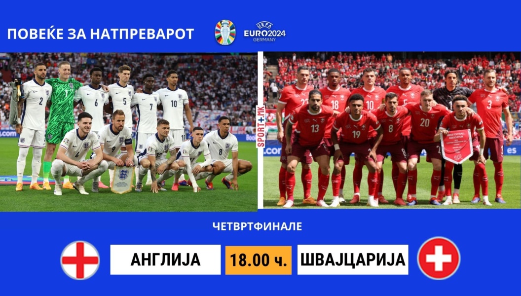 Претпоследниот патник во полуфиналето на Европското првенство во Германија, ќе го дознаеме вечерва. Селекциите на Англија и Швајцарија на Олимпискиот стадион во Берлин, си го трасираат патот за повторно да играат таму во финалниот меч. Но, само една од нив ќе има шанса да се бори за тоа во полуфиналето.
