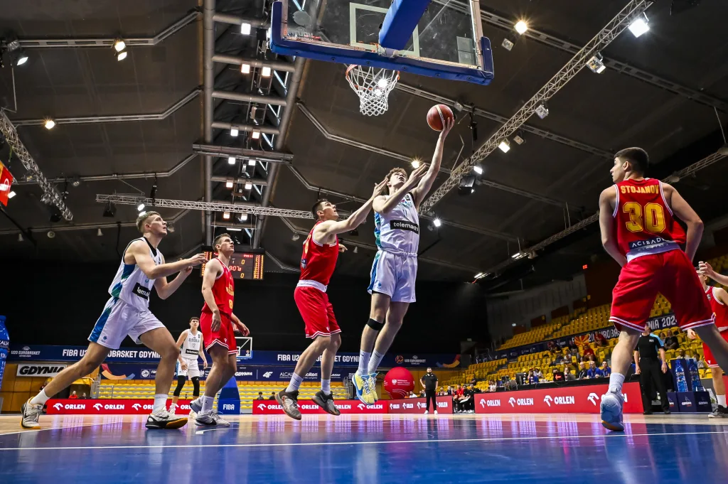 Лошо го почнаа натпреварот македонските младинци, му дозволија на противникот брзо да направи предност. Словенците имаа и 17 поени предност, а првата четвртина ја добија со +11 (16-27). Во втората подобри беа напите младинци (17-12), но на одмор заминаа со шест поени негатива (33-39). На стартот на третиот период црвено-жолтите брзо ја анулираа негативата, па и поведоа 44-43. Имаа предност се до средината на тој период (47-46) и тука застанаа. До крајот на периодот противникот постигна 19, а прими 9 поени па Словенија во последната четвртина влезе со 11 поени предност (51-62).