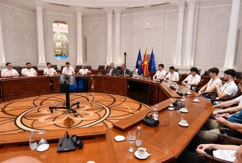 Јуниорската кошаркарска репрезентација на Македонија, денеска беше на прием во Владата. Таму златните момчиња и стручниот штаб, остварија средба до Премиерот, Христијан Мицкоски и Министерот за спорт, Борко Ристовски.