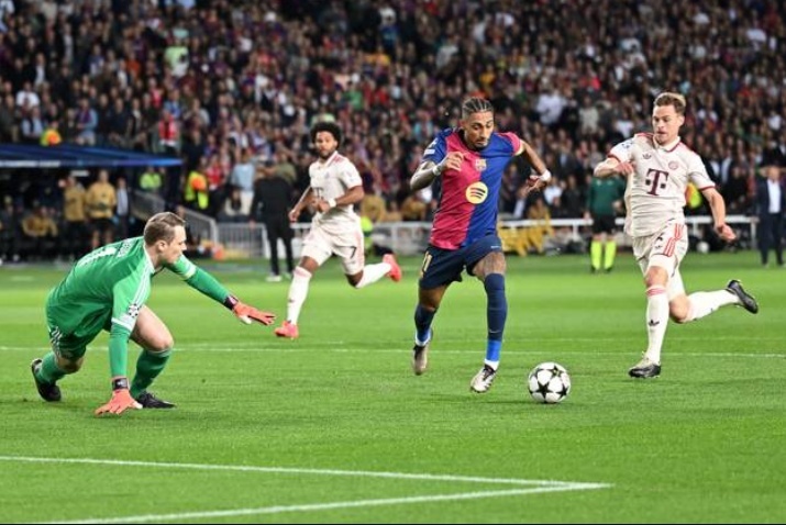 Фудбалерите на Барселона го добија дербито на третото коло во Лигата на шампионите против минхенски Баерн убедливо со 4-1. Јунак на каталонската екипа беше Бразилецот, Рафиња кој постигна три гола.