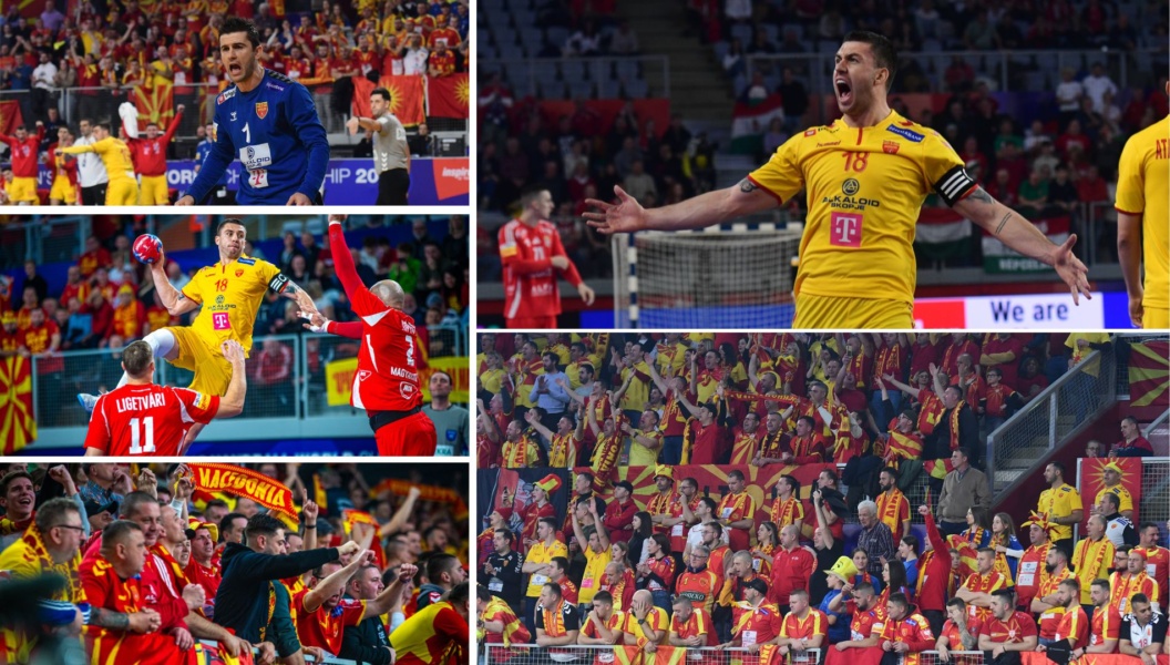 Почетокот на дуелот беше во знак на Унгарија која по 1:1, успеа да се одлепи и поведе со 5:2). Но, во тие моменти бодрени од македонските навивачи нашите ракометари ја консолидираат одбраната. Со неколку успешни интревенции на Митревски успеаат да направат пресврт. По серија од 7-1 за Македонија на семафорот во 17.минута беше 10:6 за избраниците на Кирил Лазаров. Пет од седумте голови за „жолтите“ (Македонија игра во жолта комбинација) постигна капитенот Кузмановски.