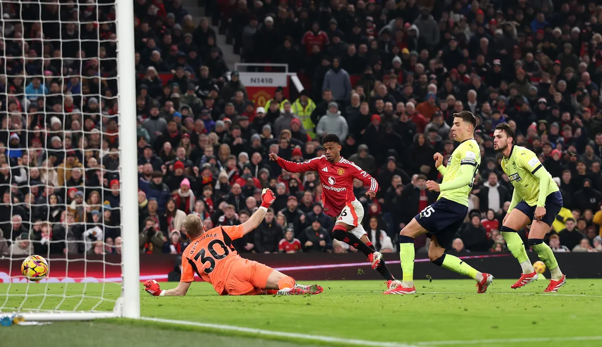 Фудбалерите на Манчестер Јунајтед се спасија од голем срам пред своите навивачи на „Олд Трафорд“. Во дуел од 21.коло на Премиер лигата, Манчестер Јунајтед благодарение на хет-трикот на Амад Диало во завршните осум минути, со пресврт го победи последното пласираниот Саутемптон со 3-1.