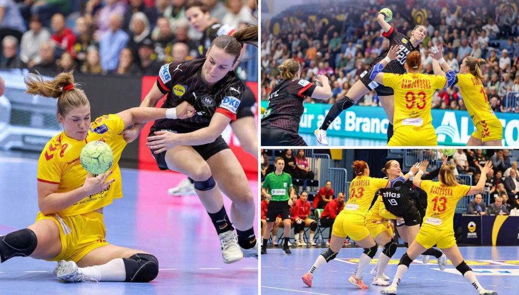 По стартното водство 0-1 за Македонија, домаќинките врзаа пет гола во низа и поведоа со 5-1. Нашите ракометарки некако успеаја да фатат приклучок и да се вратат во игра. Имаа негатива од два гола (8-6), жолто-црвените на средината на првиот дел, кој Германките го добија со +6 (14-8).