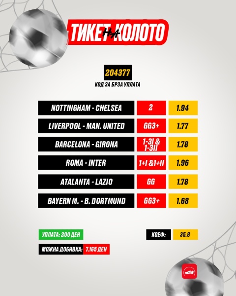 Знак дека клупскиот фудбал се врати е „дебелиот“ билтен на Златна Копачка, исполнет со повеќе страници и стотици натпревари и игри кои сега ќе ги искористиме да атакуваме на солидна добивка. Цел викенд ќе се следат со дерби-натпревари од топ 5 лигите во Европа, а ние на дел од нив бидејќи сметаме дека што и да се игра, не може да се утне. Ова е нашата визија: