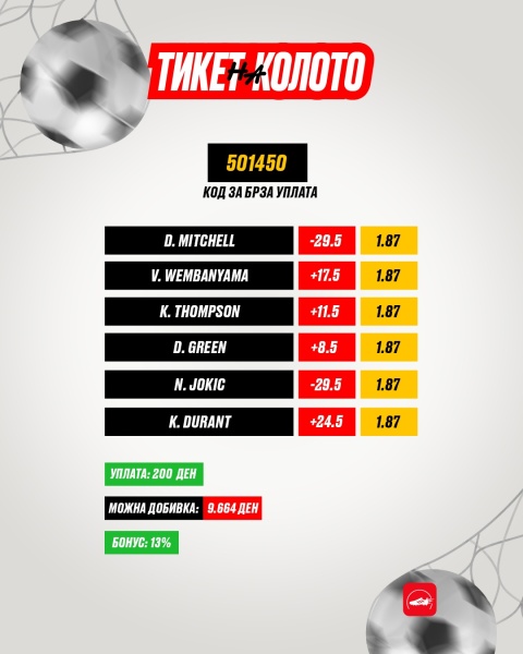 Во последно време некако слабо ни оди со фудбалите, па решивме за овонеделниот тикет на колото да одиграме NBA играчи на плус и минус. Зошто?