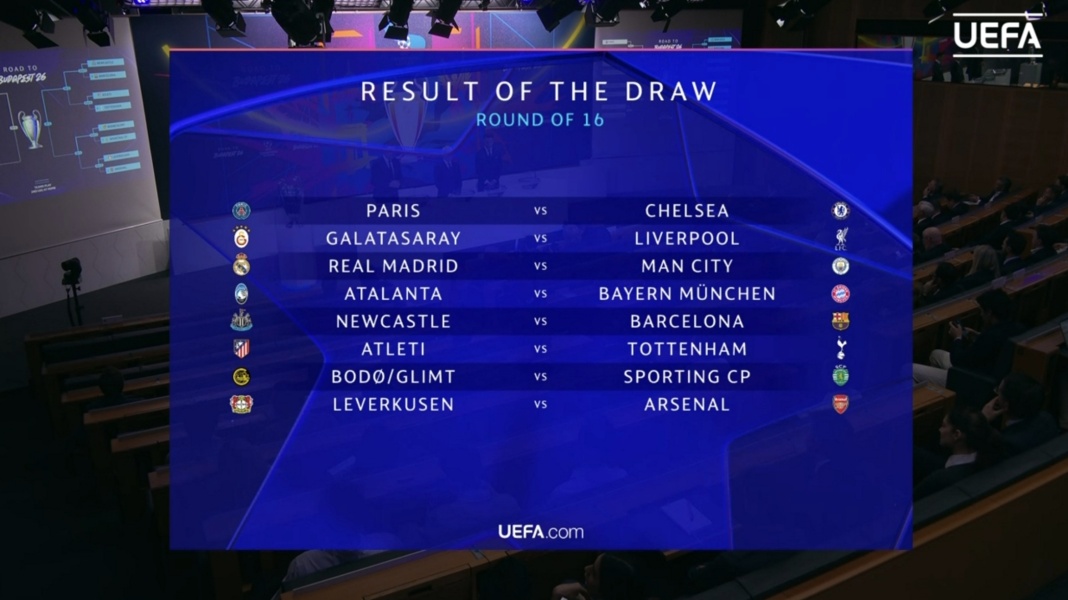 Денешната ждрепка во седиштето на УЕФА, донесе супер дерби во осминафиналето на Лигата на шампиони.