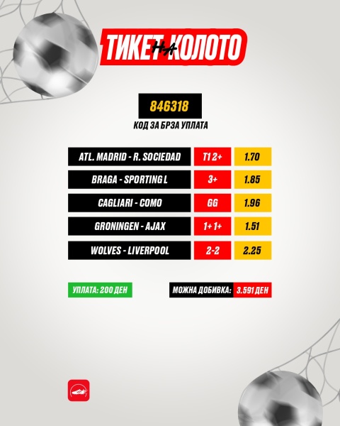 Пет натпревари, солидна добивка и дуели низ целиот викенд се наоѓаат на денешниот тикет со кој се надеваме дека ќе го скршиме ледот кога е во прашање добивката.